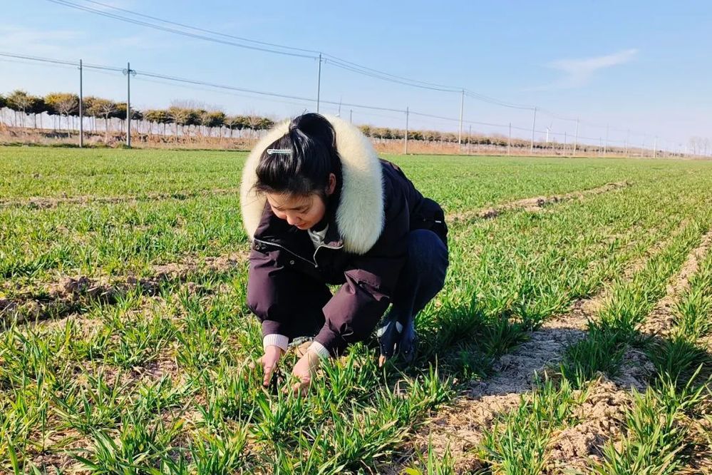 清沟理墒的同时,一场“田间问诊”正在同步展开。随着气温逐步回升,各类病虫害及杂草滋生的风险日益增加。麦田里错落分布着多个精心设置的监测点,这些便是农业技术人员检查病虫害的“前哨站”。在五生产区27大队田间,农技员吴娇娇正在监测点之间来回穿梭,只见她蹲下身子,轻轻拨开麦叶,查看叶片背面是否藏有蚜虫、红蜘蛛等害虫踪迹,“定点监测能够让我们持续、系统地掌握病虫害的发生发展规律,就像给麦田安装了‘健康追踪器’。我们每天都要这样地毯式排查,及时掌握病虫害动态,才能精准施策。”