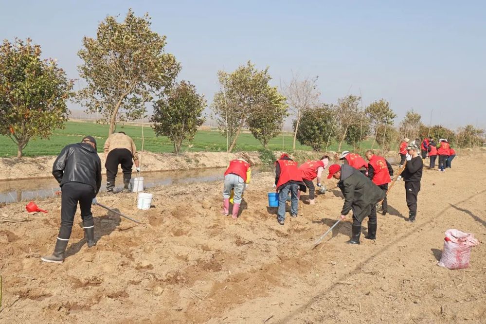 活动现场一片热火朝天的景象。技术人员为志愿者们讲解种植要点后大家迅速行动起来。挖坑区,几位年轻力壮的小伙子挥动铁锹,精准发力,不一会儿,规整的种植坑便整齐排列。公司年轻员工配合默契,一人将肥料放入土坑,另一人迅速培土放入苗种,大家分工协作,顺利完成种植任务。社区志愿者季玉玮表示:“能参与这样的活动很有意义,既锻炼了身体,又为产业发展出了力。”