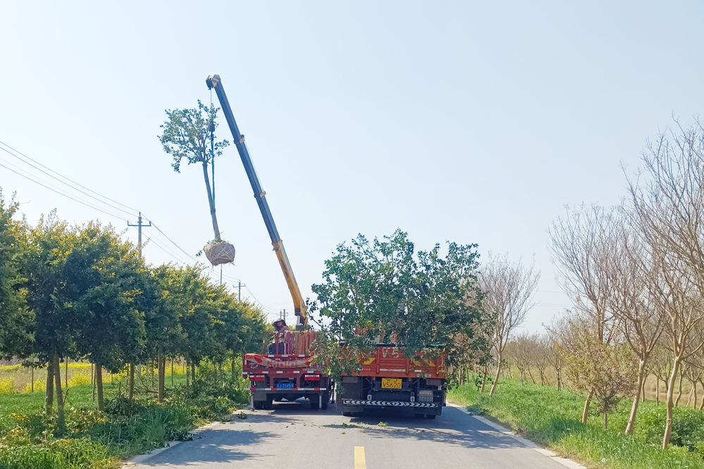 “这批苗木是前年嫁接的改良品种,冠幅饱满、分枝均匀,克服了高杆女贞果实落地的环境问题,增加了观赏性。”现场技术人员陈效成介绍,工人们采用“深挖浅提”法,先以45度角斜切根系促进新根萌发,再按“三剪三不剪”原则修枝(即剪除病虫枝、交叉枝,保留主干顶芽),确保运输成活率超95%。