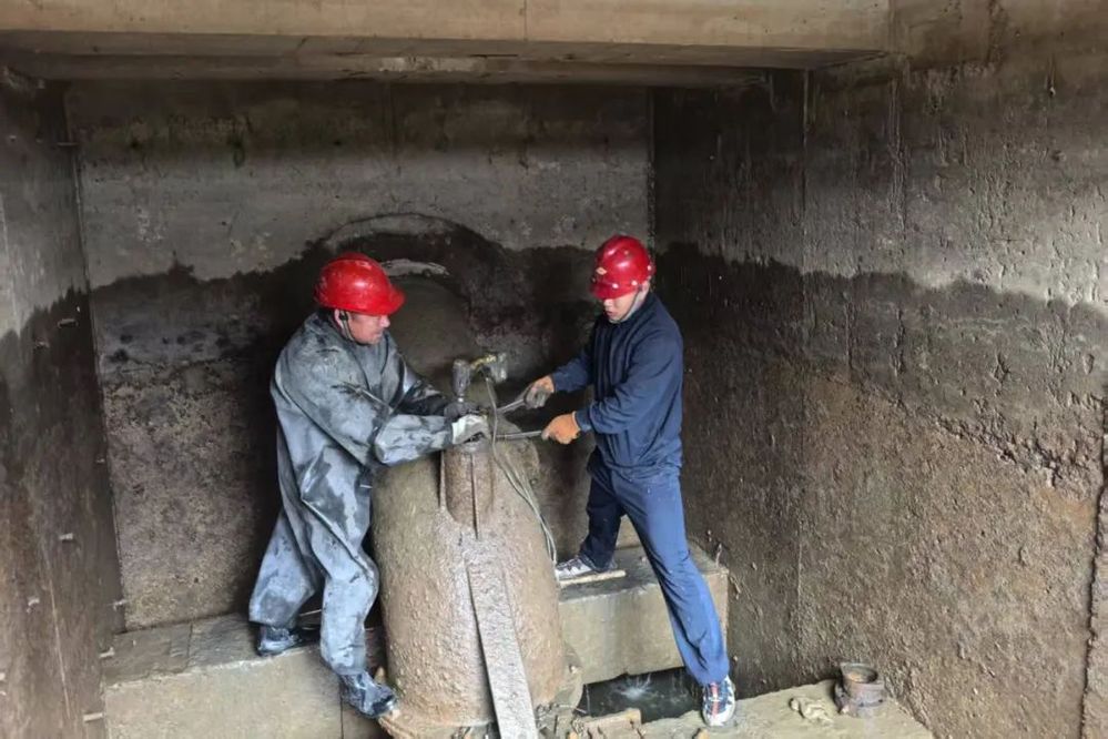 在水泵站现场,农机总站泵站维修员宋余明正带领牛程、何俊毅等分公司新进员工,有条不紊地开展泵站设备检修作业。检修队员神情专注、配合默契。宋余明凭借丰富经验,指导大家对泵站设备进行全面“体检”。他们仔细聆听水泵运转声音,不放过任何异响;紧盯设备每个部件,不放过一丝抖动迹象。