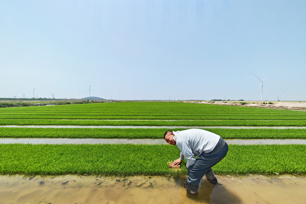 而在不远处的秧田里,另一番生机勃勃的景象同样引人注目。水稻秧苗在阳光的照耀下更显翠绿,它们排列整齐,叶片挺拔,展现出顽强的生命力。秧田里,大队管理人员吴天翔脸上洋溢着满意的笑容,他说道:“为了确保水稻的高产高质,我们从种子处理、育秧到整地移栽,每一步都严格把关。现在看这些秧苗长得如此健壮,我们非常有信心今年的水稻能够迎来大丰收。接下来,我们将按照计划,有序开展整地插秧工作,为秋季的丰收打下坚实的基础。”