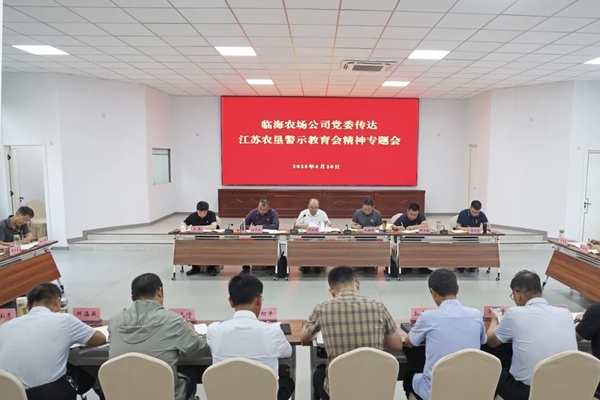 6月20日,临海农场公司党委召开传达江苏农垦2025年警示教育会精神专题会,深入学习贯彻习近平总书记关于全面从严治党的重要论述,贯彻落实党中央和省委集团公司党委关于作风建设的最新要求,对全场开展集中整治工作进行全面动员部署。党委书记、董事长、临海分公司总经理王灿明,党委副书记、总经理孙国祥等党委领导班子成员,各党(总)支部书记和各部门负责人参加会议。