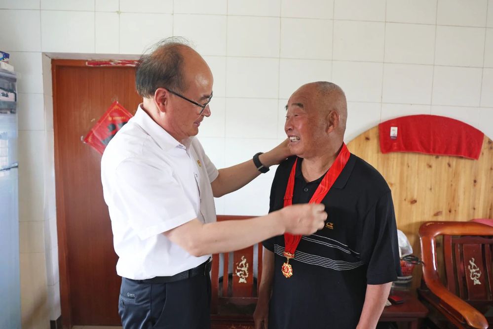 老党员周德富戴上纪念章后十分激动:“在建党104周年之际获此殊荣,我感到非常感动和欣喜,深刻感受到了党组织对老党员的关怀和温暖。”
