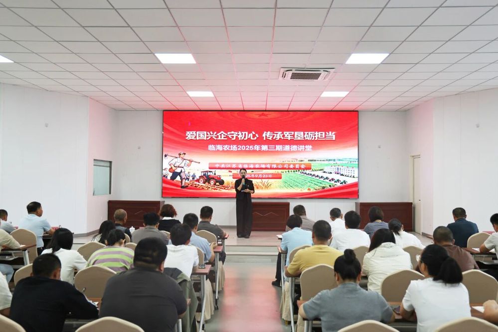 为深化国防教育、赓续红色基因,将军垦精神与公民道德建设深度融合,9月23日,临海农场举办“爱国兴企守初心,传承军垦砺担当”主题道德讲堂活动。农场公司党委委员、苏垦农发临海分公司副总经理、工会主席冯卫东,农场公司党委委员、副总经理、工会主席胡双,各党(总)支部书记以及青年员工齐聚一堂,在歌声、影像与亲历者的讲述中,重温军垦岁月、厚植爱国情怀,为农场高质量发展凝聚精神力量。