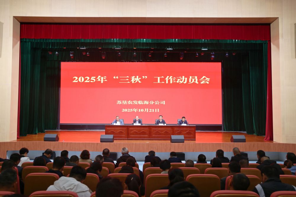 为贯彻落实苏垦农发“三秋”工作会议精神,高标准、快进度推进今年“三秋”生产工作,10月21日,临海农场召开2025年“三秋”工作动员会。农场公司党委书记、董事长、苏垦农发临海分公司总经理王灿明,农场公司党委副书记、总经理孙国祥等领导班子成员出席会议。